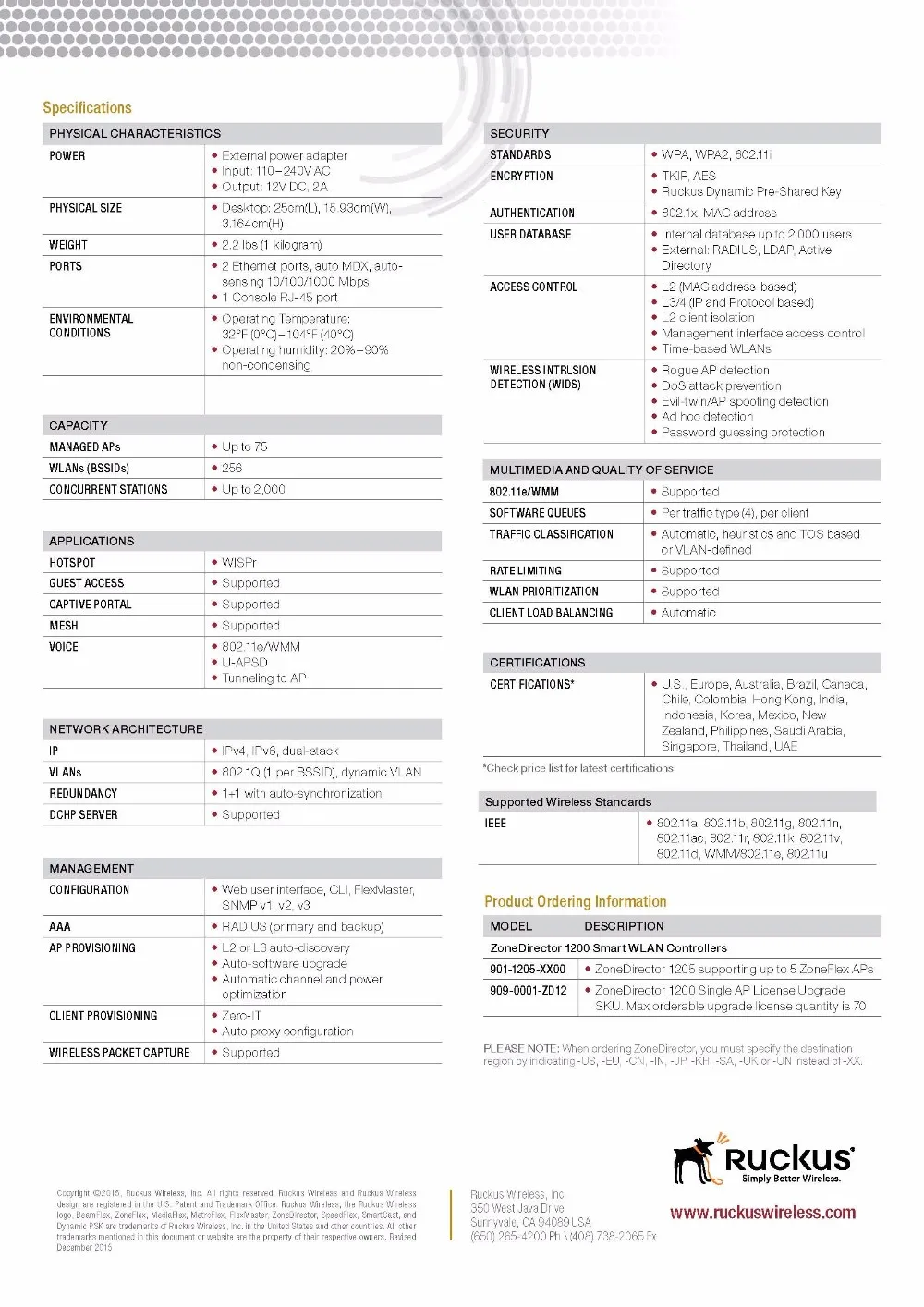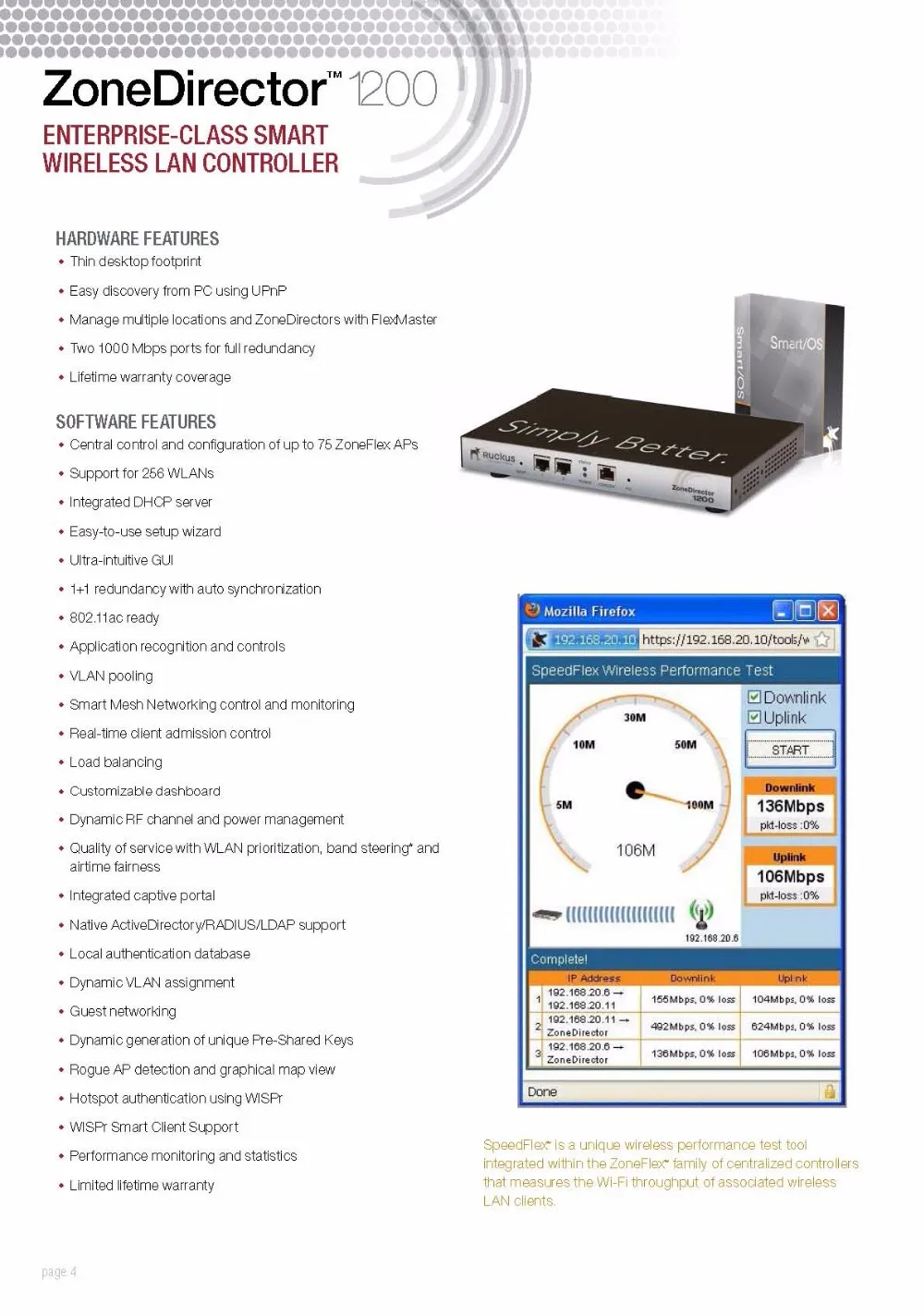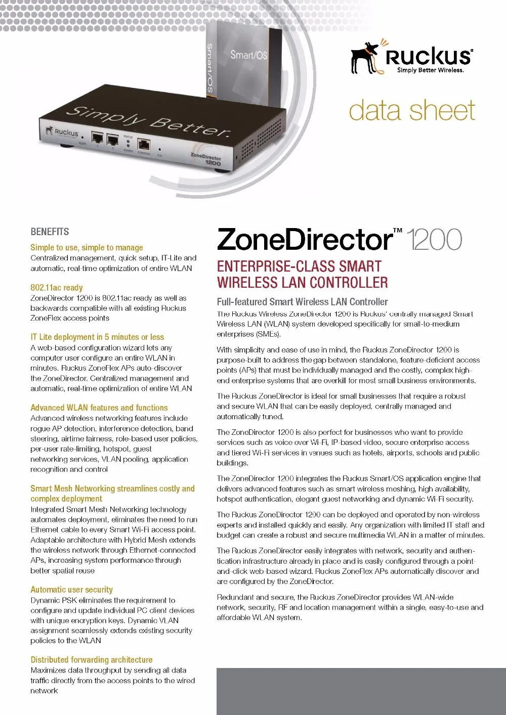 With simplicity and ease of use in mind, the Ruckus ZoneDirector 1200 is purpose-built to address the gap between standalone, feature-deficient access points (APs) that must be individually managed and the costly, complex highend enterprise systems that are overkill for most small business environments.