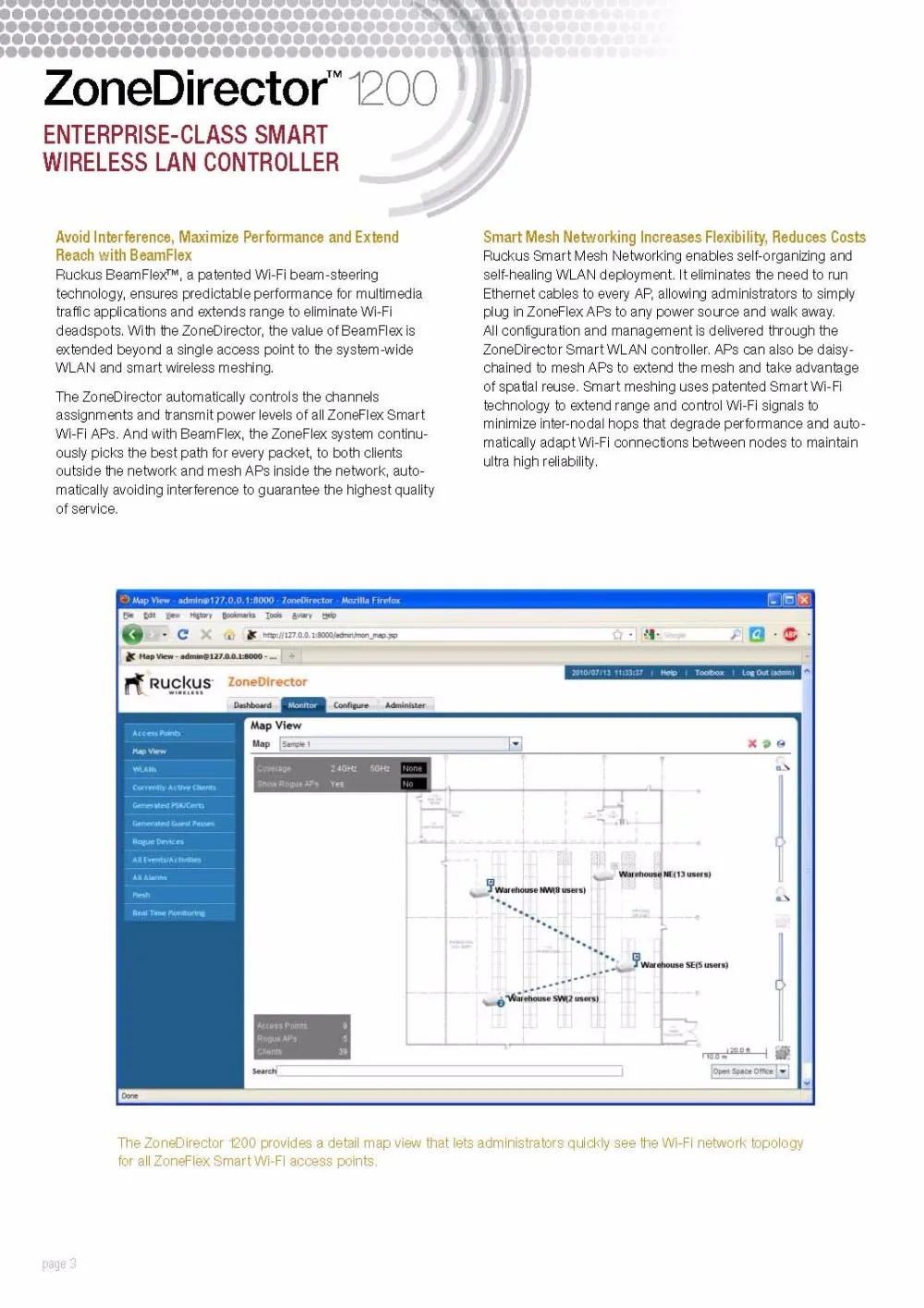 The Ruckus ZoneDirector 1200 can be deployed and operated by non-wireless experts and installed quickly and easily. Any organization with limited IT staff and budget can create a robust and secure multimedia WLAN in a matter of minutes.